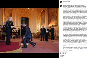 我無法用言語(yǔ)形容今天對(duì)我來說是多么特別的一天,一個(gè)在東倫敦出生的男孩,從國(guó)王手中接過騎士爵位勛章。