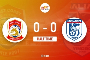 傷停補(bǔ)時(shí)2分鐘。上半場(chǎng)比賽結(jié)束,青島西海岸0-0大連英博。