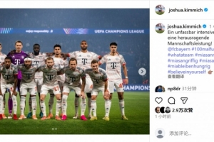 本場比賽也是基米希生涯第100次在歐冠出場,他在個(gè)人社媒曬出全隊(duì)合照,配文寫道:“在這一場緊張激烈的比賽中,球隊(duì)表現(xiàn)完美,達(dá)成歐冠百場里程碑!”