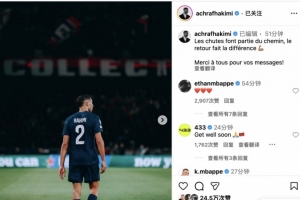 體育資訊11月6日訊 阿什拉夫在對(duì)陣拜仁的比賽中受傷,球員發(fā)文。
