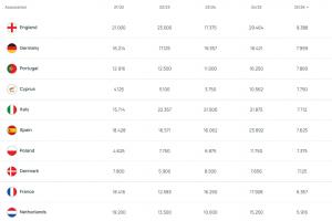 歐戰(zhàn)本賽季最新積分:英格蘭、德國(guó)、葡萄牙前三,塞浦路斯第四!