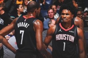 本場(chǎng)比賽,杜蘭特全場(chǎng)出戰(zhàn)34分半,18投5中,拿到11分4板5助1斷1帽,正負(fù)值+20;阿門打了38分鐘26投13中,三分3中1、罰球1中1拿到28分10籃板7助攻2搶斷,正負(fù)值+22。