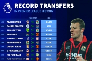 1996年 阿蘭-希勒:1800萬歐(布萊克本→紐卡)