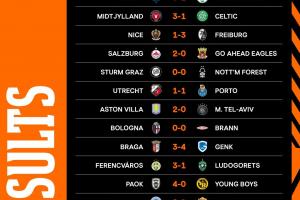 體育資訊11月07日訊 本賽季歐聯(lián)結束聯(lián)賽階段前4輪的爭奪,目前積分榜上中日德蘭4戰(zhàn)全勝領跑,維拉排名第6,貝蒂斯排名第9,羅馬第18,諾丁漢森林第23。
