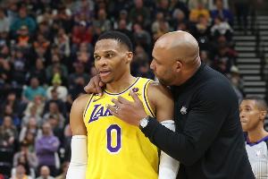 他說:“我是那個舉手決定讓威少替補出場的人。只是為了平衡我們的團(tuán)隊。因為我知道防守戰(zhàn)術(shù)的布置,而勒布朗需要球權(quán),安東尼·戴維斯需要球權(quán),威少在場上——現(xiàn)在你有三個持球進(jìn)攻型的球員。所以我知道,為了讓我們的球隊保持某種平衡,取得某種成功,我們必須平衡我們的打法。因此,他作為替補出場——對我們來說效果不錯。”