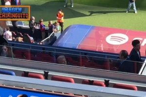 巴薩今日在諾坎普球場(chǎng)進(jìn)行公開訓(xùn)練,俱樂部主席拉波爾塔來到現(xiàn)場(chǎng)。