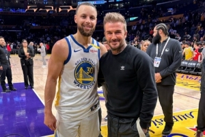 本場比賽,前足球巨星貝克漢姆場邊觀戰(zhàn),賽后,勇士官方曬出了他和庫里的合照,并寫道:“惺惺相惜?!?/p>