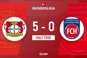 體育資訊11月08日訊 勒沃庫森半場5-0領(lǐng)先海登海姆,對(duì)手被迫33分鐘連換兩人。
