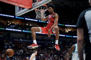 上半場(chǎng),鵜鶘并不占優(yōu),墨菲個(gè)人發(fā)揮上佳,獨(dú)自苦撐。他出戰(zhàn)17分鐘,9投6中,三分4中2,罰球2中2,得16分4板1助。