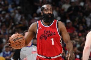 全場(chǎng)比賽,哈登出戰(zhàn)40分鐘,投籃15中4,三分10中2,拿到13分13助,正負(fù)值-18全場(chǎng)最低。