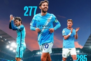本場比賽也是B席第277次代表曼城在英超出場,升至隊(duì)史第三位,僅次于席爾瓦的309場以及德布勞內(nèi)的285場。