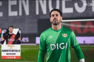 體育資訊11月10日訊 西甲第12輪,巴列卡諾主場(chǎng)0-0戰(zhàn)平皇馬,送出5次撲救的巴列卡諾門(mén)將巴塔拉當(dāng)選全場(chǎng)最佳。