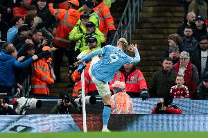 體育資訊11月10日訊 英超第11輪比賽,曼城在伊蒂哈德球場迎戰(zhàn)利物浦。本場比賽,主隊前鋒哈蘭德盡管在上半場錯失1粒點球,但他之后頭槌破門為球隊首開紀錄。