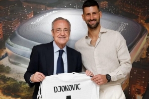 網壇傳奇德約科維奇來到伯納烏球場,現場觀看皇馬的比賽,他獲贈皇馬球衣,并與皇馬主席弗洛倫蒂諾合影留念。