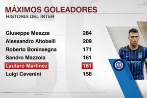 體育資訊11月10日訊 國米在本輪意甲焦點戰(zhàn)2-0力克拉齊奧,勞塔羅建功。數據統(tǒng)計顯示他也追平馬佐拉并列國米隊史射手榜第4位。