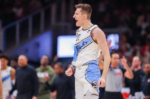 克雷伊奇成為奇兵,上半場(chǎng)9投6中,三分7中5砍下全場(chǎng)最高的17分,其中第二節(jié)14分,正負(fù)值+8。
