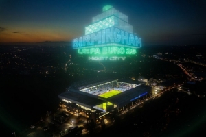 伯明翰將承辦賽事中的四場(chǎng)比賽,比賽地點(diǎn)為維拉公園球場(chǎng),比賽日期分別為6月11日、15日、20日和27日。在伯明翰,當(dāng)?shù)刂鬓k城市的官方標(biāo)志于周三晚間首次亮相,伯明翰圖書館也被點(diǎn)亮燈光以示慶祝。