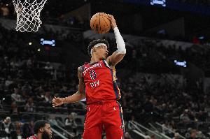 體育資訊11月13日訊 鵜鶘主場(chǎng)迎戰(zhàn)開拓者,上半場(chǎng)59-57領(lǐng)先。