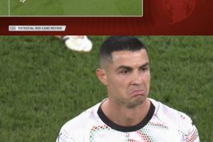 體育資訊11月14日訊 葡萄牙vs愛(ài)爾蘭,C羅下半場(chǎng)因肘擊動(dòng)作被罰下。