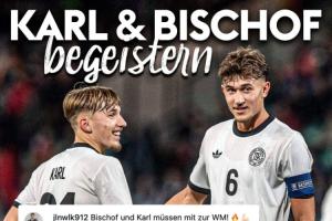 此役,來自拜仁的雙子星卡爾和比朔夫貢獻(xiàn)了極佳的表現(xiàn):17歲的卡爾首次入選德國U21,本場(chǎng)比賽貢獻(xiàn)2球。20歲的比朔夫更是擔(dān)任德國隊(duì)的場(chǎng)上隊(duì)長,貢獻(xiàn)3球1助。在數(shù)據(jù)機(jī)構(gòu)Sofascore的賽后評(píng)分中,二人均得到了10分滿分。