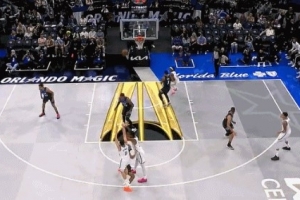GIF-薩格斯對(duì)杰明三分犯規(guī),疑似墊腳升級(jí)一級(jí)惡意犯規(guī)