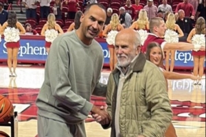 今天他現(xiàn)身NCAA賽場,觀戰(zhàn)阿肯色大學vs桑福德大學的比賽。