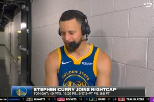 體育資訊11月15日訊 NBA杯,勇士109-108擊敗馬刺,賽后庫里連線接受采訪。