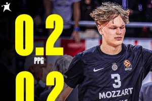 體育資訊11月17日訊 明年的熱門新秀穆里寧截止目前為止,在歐籃聯(lián)只出場(chǎng)4次,場(chǎng)均出場(chǎng)時(shí)間僅為1分55秒,而他的場(chǎng)均數(shù)據(jù)可以忽略不計(jì),4場(chǎng)比賽合計(jì)就得到1分,場(chǎng)均為0.25分,也沒(méi)有籃板、助攻進(jìn)賬。
