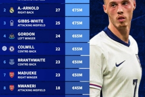 體育資訊11月17日訊 德轉(zhuǎn)盤(pán)點(diǎn)了缺席本期英格蘭名單球員身價(jià)榜,具體如下: