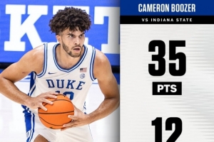 體育資訊11月17日訊 在此前的一場NCAA比賽中,杜克大學(xué)100-62大勝印第安納州立大學(xué)??仿 げ紳蔂柨窨?5分12籃板5助攻3搶斷3蓋帽。而這僅僅是他代表杜克打的第四場正式比賽。