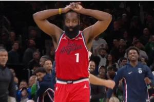 GIF-哈登壓哨出手險些絕平!