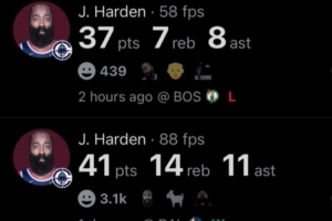 此役快船球星哈登出場37分鐘22投9中,三分11中5、罰球15中14空砍全場最高37分外加7板8助1斷,正負(fù)值-8。