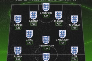 ■以下是英格蘭世預(yù)賽最高評(píng)分陣容