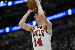 公牛球員布澤利斯上半場(chǎng)表現(xiàn)不錯(cuò),三分線外百發(fā)百中,沖搶籃板也還是很積極。