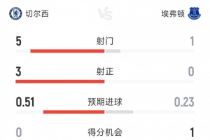 體育資訊4月26日訊 本輪英超切爾西對陣埃弗頓上半場結(jié)束,藍(lán)軍憑借杰克遜進(jìn)球暫時領(lǐng)先,以下為雙方半場數(shù)據(jù)對比: