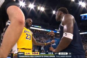 距離比賽結(jié)束還剩2分鐘時(shí),詹姆斯在一次挑戰(zhàn)期間與對(duì)手(康利和愛德華茲)的嬉鬧被媒體和球迷不斷放大,此時(shí)湖人落后森林狼7分。