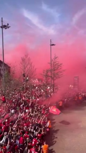 體育資訊04月27日訊 利物浦vs熱刺賽前,利物浦球迷在安菲爾德場外聚集,現(xiàn)場人山人海,球迷燃起紅色煙霧營造氣氛!