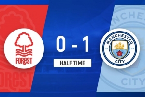 上半場補時1分鐘,曼城1-0諾丁漢勝利。