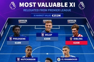 體育資訊4月28日訊 伊普斯維奇、萊斯特城以及南安普頓已經(jīng)確定本賽季從英超降級,德轉(zhuǎn)列三隊中最貴身價陣容,拉姆斯代爾、德拉普在列。
