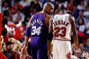 巴克利身高1.98米、體重114kg,喬丹身高1.98米、體重89kg。