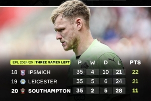 此役過后,南安普頓2勝5平28負積11分,仍與德比郡2007-2008創(chuàng)造的英超最低積分紀錄持平,南安普頓本賽季剩下三輪比賽的對手是曼城、埃弗頓和阿森納。
