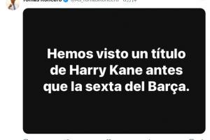 《阿斯報(bào)》主編、皇馬球迷龍賽羅在社媒上發(fā)布圖片,上面寫著:我們在巴薩拿第六座歐冠前見證了凱恩奪冠。