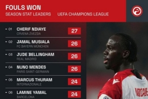 上一篇: 本賽季歐冠造犯規(guī)數(shù):穆西亞拉、貝林厄姆、門德斯26次第二