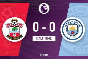 上半場(chǎng)傷停補(bǔ)時(shí)2分鐘,半場(chǎng)結(jié)束,曼城暫0-0南安普頓。