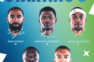 森林狼:康利、愛(ài)德華茲、麥克丹尼爾斯、蘭德爾、戈貝爾。