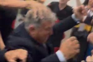 “排隊(duì)人群望不到頭,所有人都知道主席帶著獎(jiǎng)杯在里面”。掌聲與歌聲交織,一些好奇者試圖擠過人群近距離觀看慶祝。