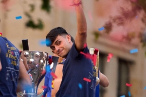 體育資訊5月17日訊 巴薩提前兩輪鎖定西甲冠軍,球隊已經(jīng)開始盛大的奪冠歡慶游行。