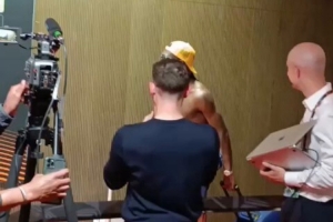 賽后比蘇馬赤裸上身、拖著行李箱唱著歌,走過(guò)媒體區(qū),離開(kāi)圣馬梅斯球場(chǎng)。