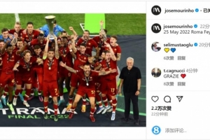 體育資訊5月25日訊 穆里尼奧更新社媒動(dòng)態(tài),回顧2022年帶領(lǐng)羅馬問(wèn)鼎歐協(xié)聯(lián)。