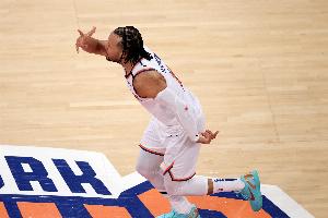 第一節(jié),尼克斯后衛(wèi)布倫森殺傷力十足,打滿12分鐘6投2中,三分3中1、罰球6中6拿到11分1籃板1助攻,正負(fù)值-4。